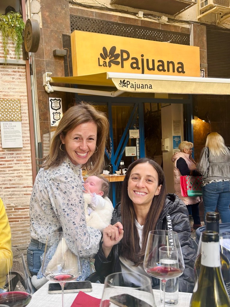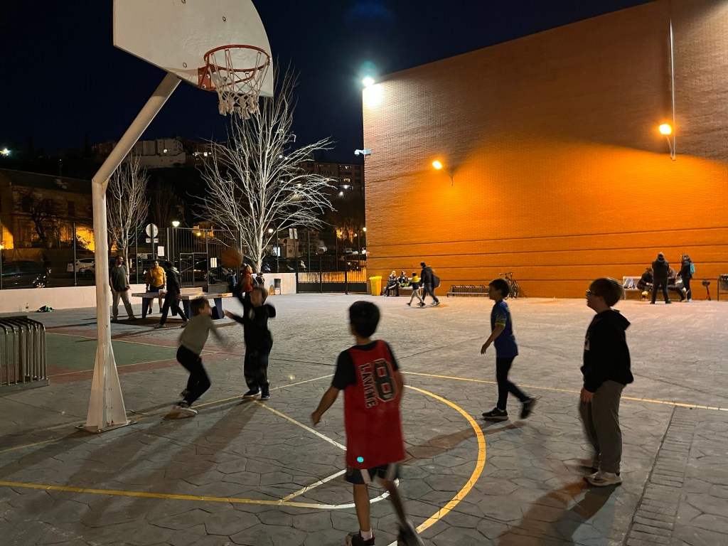 Julie got to spend Friday morning paseando/strolling with Carina and cuddling baby Gabriela. Then Carina, Fer, Gabriela, Julie and David had a drink at La Tana. After chess and robotics, David took the kids to play basketball at Bola de Oro with Julian/Rafa, David/Jose/Elena/Carmen, and Sael/Susana/Mar. Afterward we had drinks and dinner while standing at a makeshift table at Curro. We had great conversations about accents and Jose and Susana’s challenging but meaningful work, all while drops of water fell off the awning.